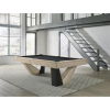 The Vancouver pool table features a modern mix of materials and textures highlighting its fresh and contemporary design. A wood batten-style base with a powder-coated metal beam completes the clean, organic aesthetic. Pair this billiard table with a dining conversion top for ultimate entertaining. This pool table features white pearlized diamond rail sights, robust construction, and internal drop pockets.