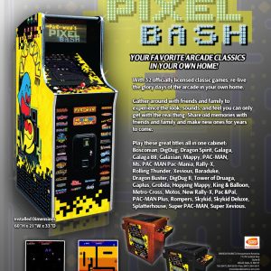 With 32 officially licensed classic games, re-live the glory days of the arcade in your own home. Gather around with friends and family to experience the look, sounds and feel you can only get with the real thing. Share old memories with friends and family and make new ones for years to come. Play these great titles all in one cabinet: Bosconian, DigDug, Dragon Spirit, Galaga, Galaga 88, Galaxian, Mappy, PAC-MAN, Ms.PAC-MAN Pac-Mania, Rally-X, Rolling Thunder, Xevious, Baraduke, Dragon Buster, DigDug II, Tower of Druaga, Gaplus, Grobda, Hopping Mappy, King & Balloon, Metro-Cross, Motos, New Rally-X, Pac & Pal, PAC-MAN Plus, Rompers, Skykid, Skykid Deluxe, Splatterhouse, Super PAC-MAN, Super Xevious.