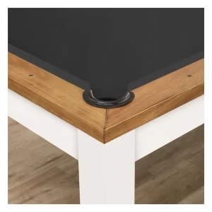 The Penelope II has the same sleek, clean frame of the first-generation table but with a thinner overall body. This table’s post legs, wood frame, and steel support beams provide maximum stability. It also has a slate-leveling system to ensure a consistent playfield. This table also comes with a dining top that can convert the table from a place to play to a place to dine.