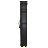 Hold 3 butts 5 shafts, spring loaded hard tubes, two pouches plus a jump cue pocket, two handles, and a comfortable shoulder strap.