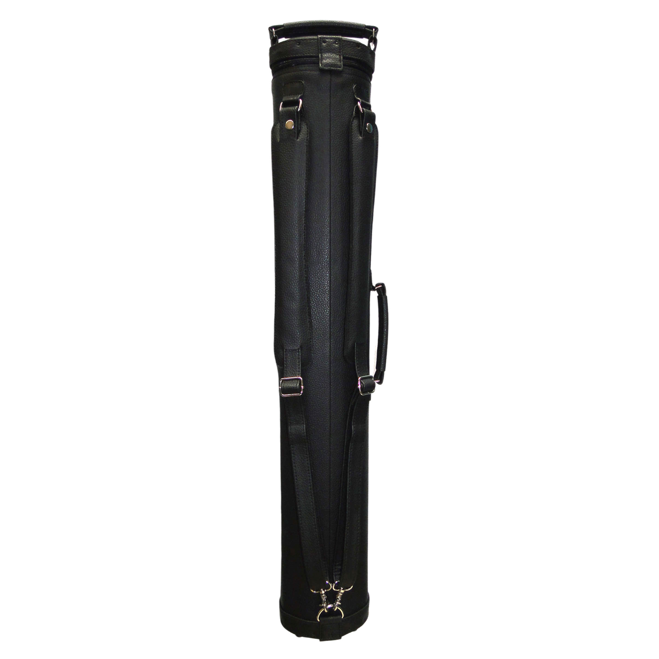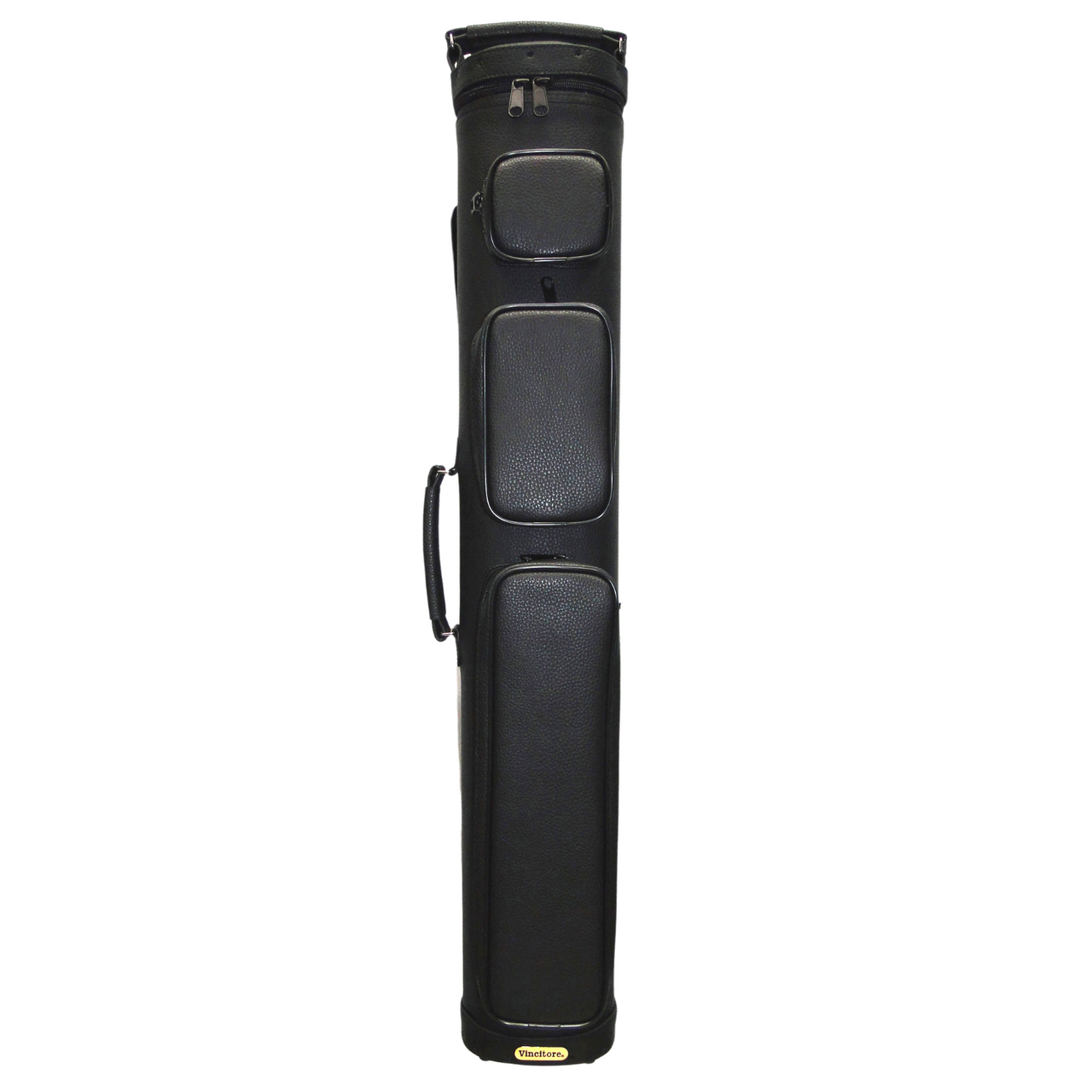 Vincitore case, black leatherette, hold 4 butts 8 shafts, light weight solid lined tubes inside, with 3 pouches and jump cue pocket, top and side comfort handles, double shoulder straps with shoulder pads.