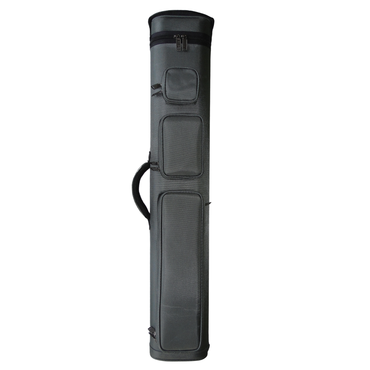 4 butts 8 shafts J&J case, nylon exterior, hold 4 butts 8 shafts, Thick satin dividers inside, with 3 pouches and jump cue pocket, top and side comfort handles, double shoulder straps with comfort shoulder pads. (if use one shoulder strap, may remove one to keep as spare). It is a strong and high quality case.