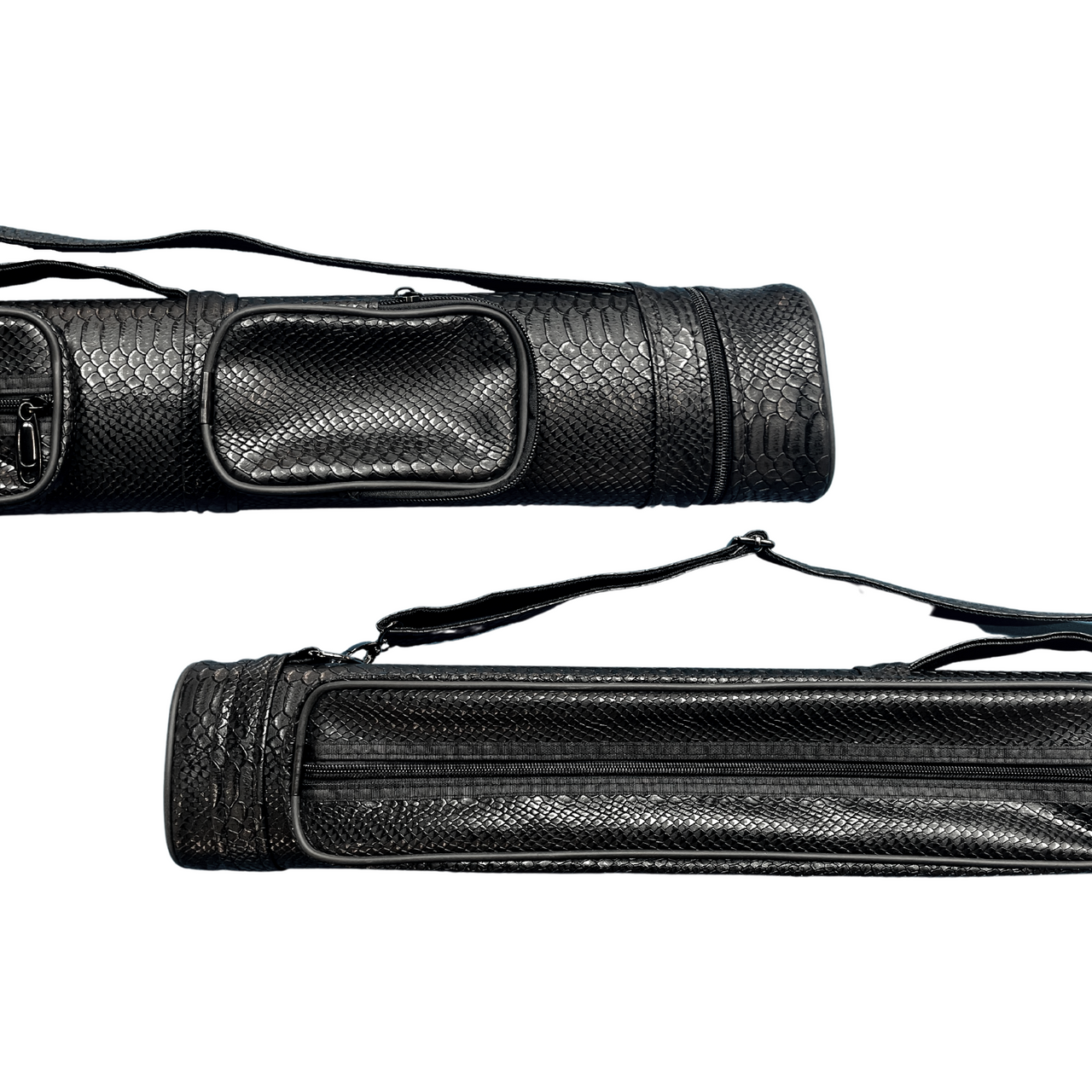 Presenting Koda’s Leatherette Hard Polyform case, designed with 2 butts and 2 shafts to perfectly fit your billiard cues. Crafted from premium Exotic leatherette material, this case boasts of a large jump cue pocket with front zipper access and a medium accessory pocket to store all your essentials. The Exotic case also features heavy-duty bottoms to ensure its durability, along with a padded handle and a matching vinyl carrying strap for comfortable transportation.