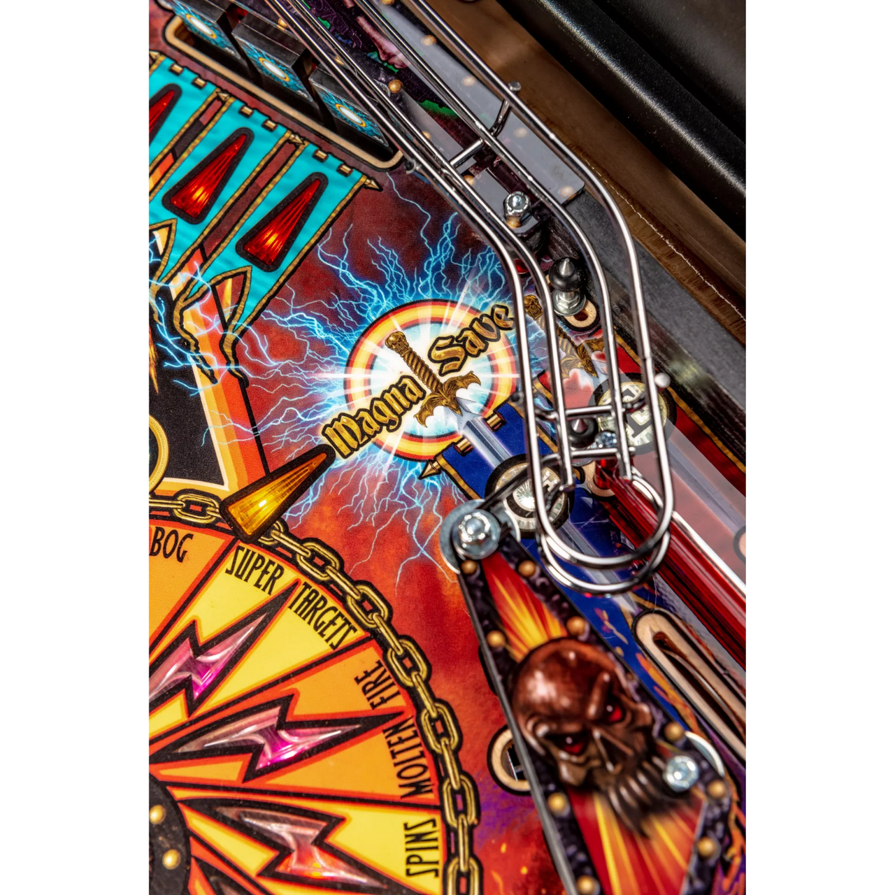 The model includes the distinct “Magna-Save”, a player-controlled magnet used to prevent a ball from draining, and timed resetting drop targets. In addition, Black Knight: Sword of Rage features a legacy sound package composed and performed by Scott Ian of Anthrax with Brendon Small, adrenalizing the audio experience for players on their journey, and custom speech by Ed Robertson of Barenaked Ladies.