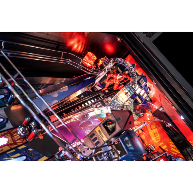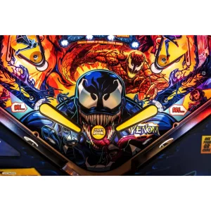 Playing as Venom, gamers will select a host to bond with at the start of each game, altering the entire gaming experience both physically and digitally. Vertical pinball lock symbiote containment vessels located on both sides of the playfield lock and quickly release balls for constant frenetic action as players explore shots through the mechanically changing Agro-Lab and Life Foundation pathways. Players will bash an interactive, custom sculpted Carnage captive ball back into Ravencroft Institute for the Criminally Insane. Additionally, a surprise Doppelganger attack can swing into action at a moment’s notice, unveiling three uplift targets wreaking chaos.