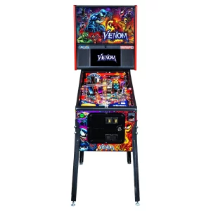 Venom, an alien symbiote that bonds with various hosts, including former Spider-Man antagonist Eddie Brock, first appeared in The Amazing Spider-Man comic book series in the ’80s. The symbiote gives its host superhuman strength and agility, providing creative and versatile powers out of its material. With its unique and visually striking appearance, Venom quickly became one of Marvel’s most recognizable and popular characters. Venom has been an inspiration for numerous products including: action figures, apparel, collectibles, and now pinball – cementing its continual influence on popular culture in game rooms and entertainment locations worldwide.