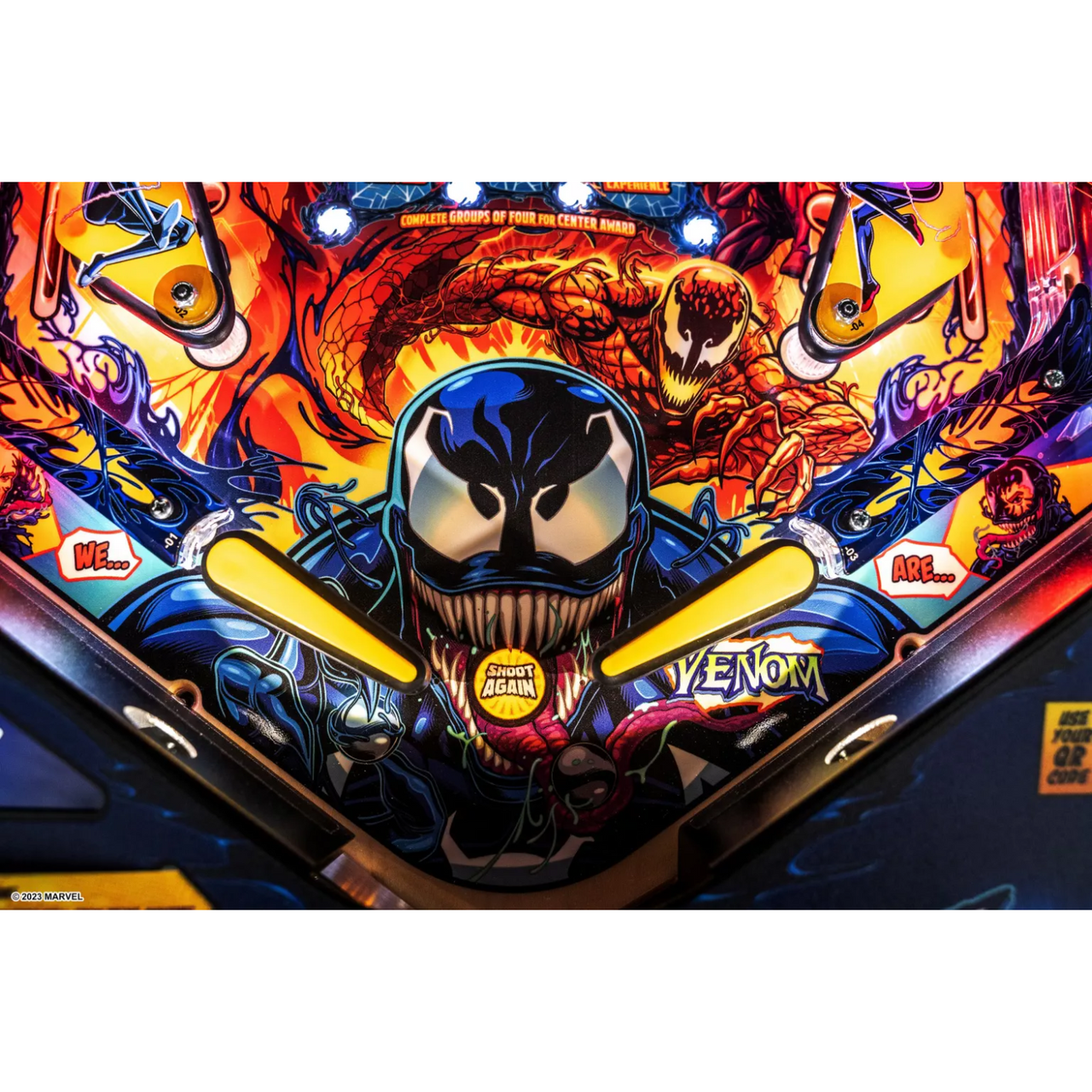 Stern’s Venom pinball games will immerse players into the mayhem of this antihero’s Marvel Universe, featuring more than 20 characters including: Eddie Brock, Flash Thompson, Gwen Stacy, Peter Parker, Black Suit Spider-Man, Miles Morales, Riot, Agony, Lasher, Phage, Doppelganger, Venomized Hulk, Venomized Wolverine and Venomized Captain America. Venom’s arch enemy Carnage is collecting Codices to awaken Knull, the God of the symbiotes. Venom must stop Carnage by battling through his army of symbiotes and the Infected to prevent him from taking over the world.